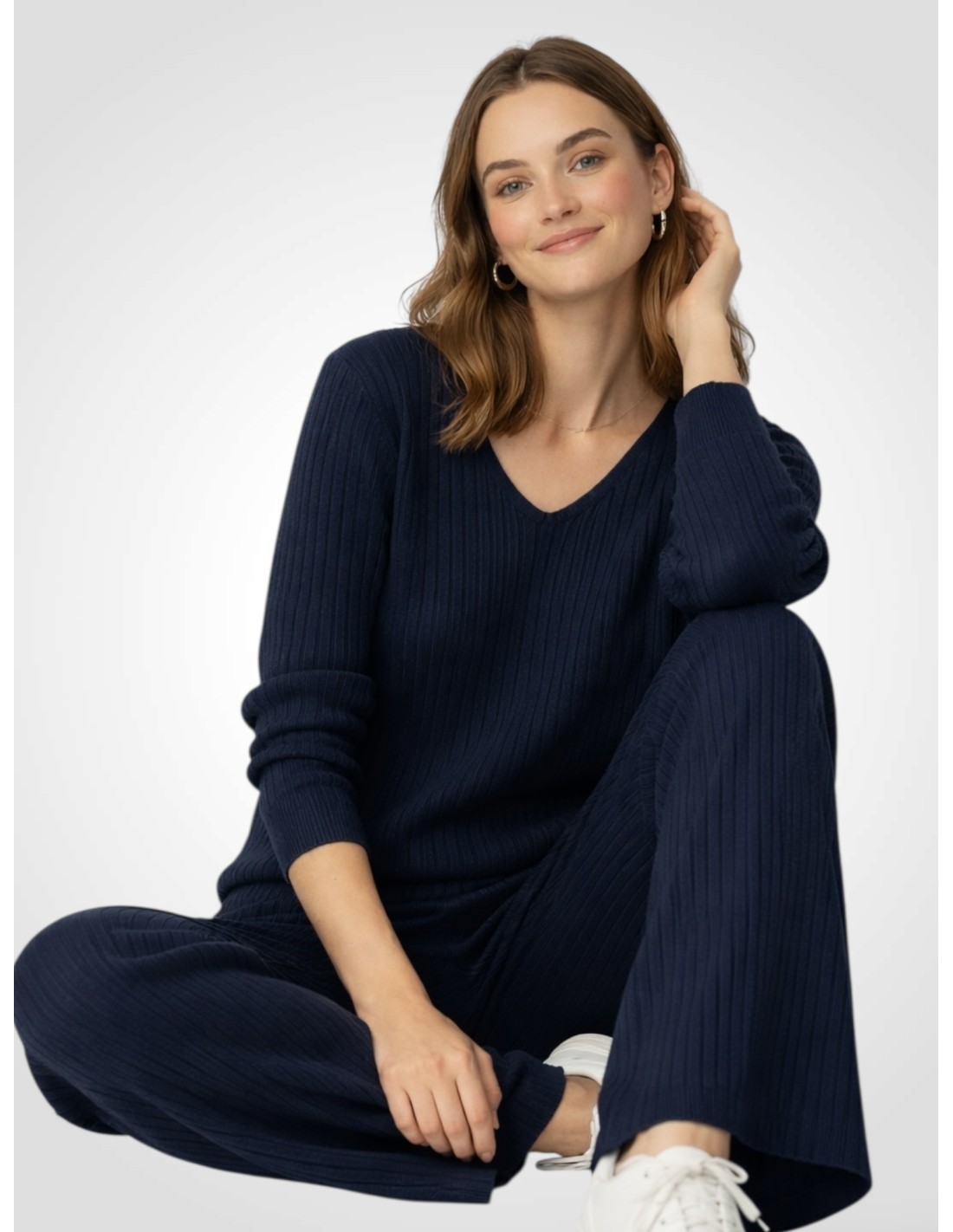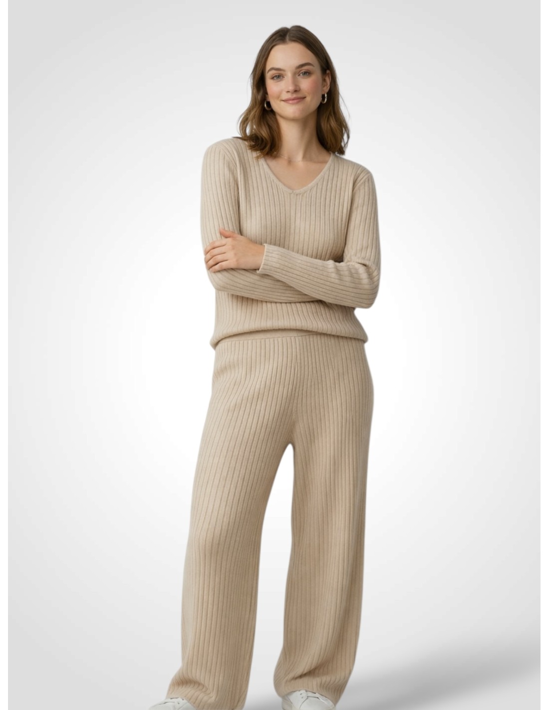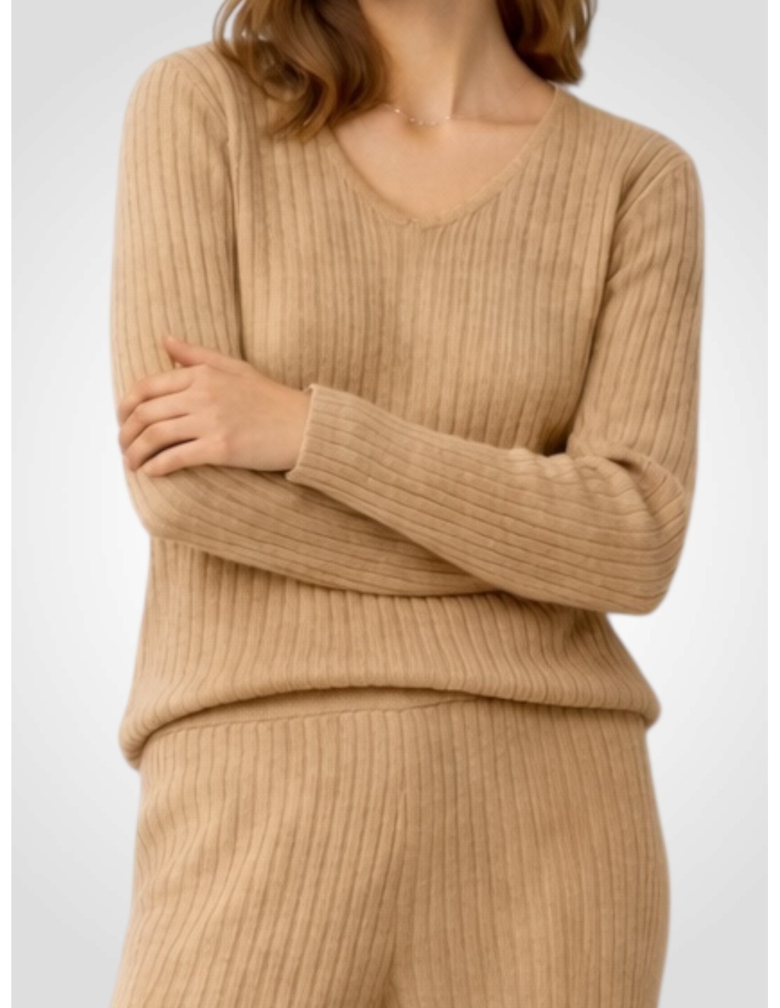 Este conjunto de punto canalé es ese look que te resuelve el día sin renunciar al estilo. Su tejido elástico se adapta al cuerpo con suavidad, aportando una silueta estilizada y un aire sofisticado perfecto tanto para el día a día como para ocasiones más especiales. Ideal para llevar junto o combinar sus piezas por separado.