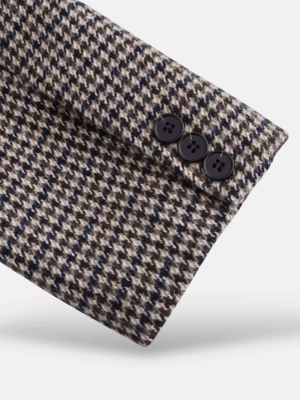 Elegante blazer confeccionado en tejido de paño con estampado a cuadros, que aporta textura y carácter a cualquier look. Su corte clásico combinado con una silueta moderna lo convierten en una prenda clave para estilismos de oficina o salidas especiales.