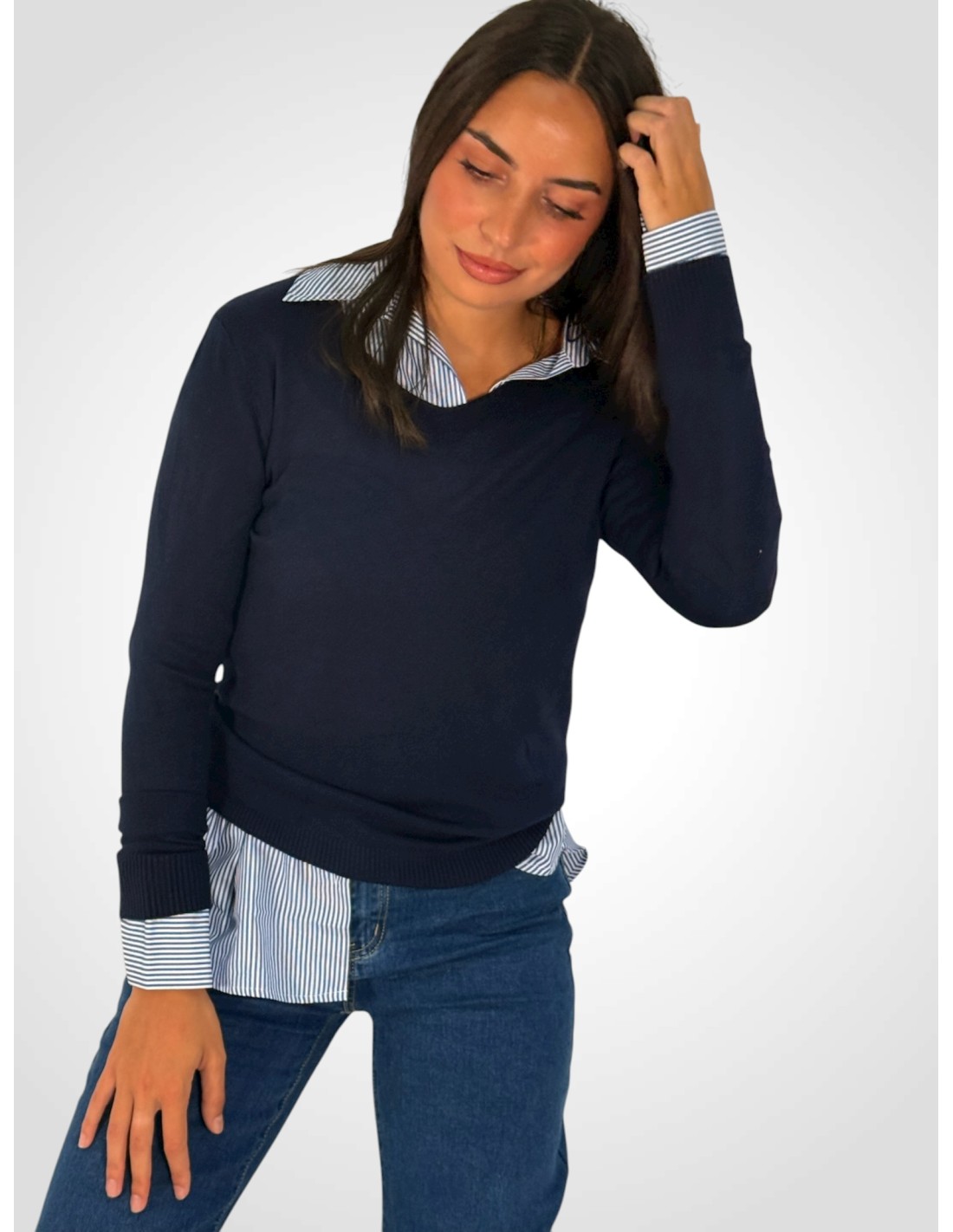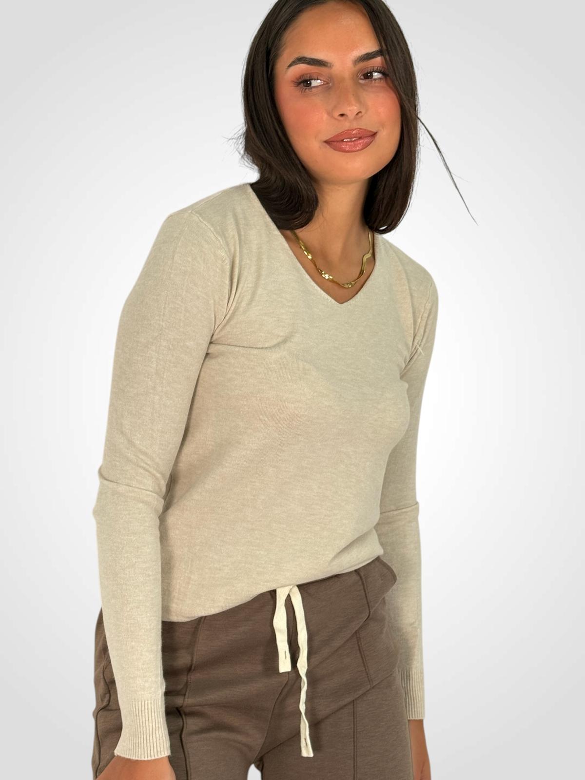 Un jersey con escote en pico elegante, cómodo y extremadamente combinable. Hazlo tuyo con SIGLERWOMAN.