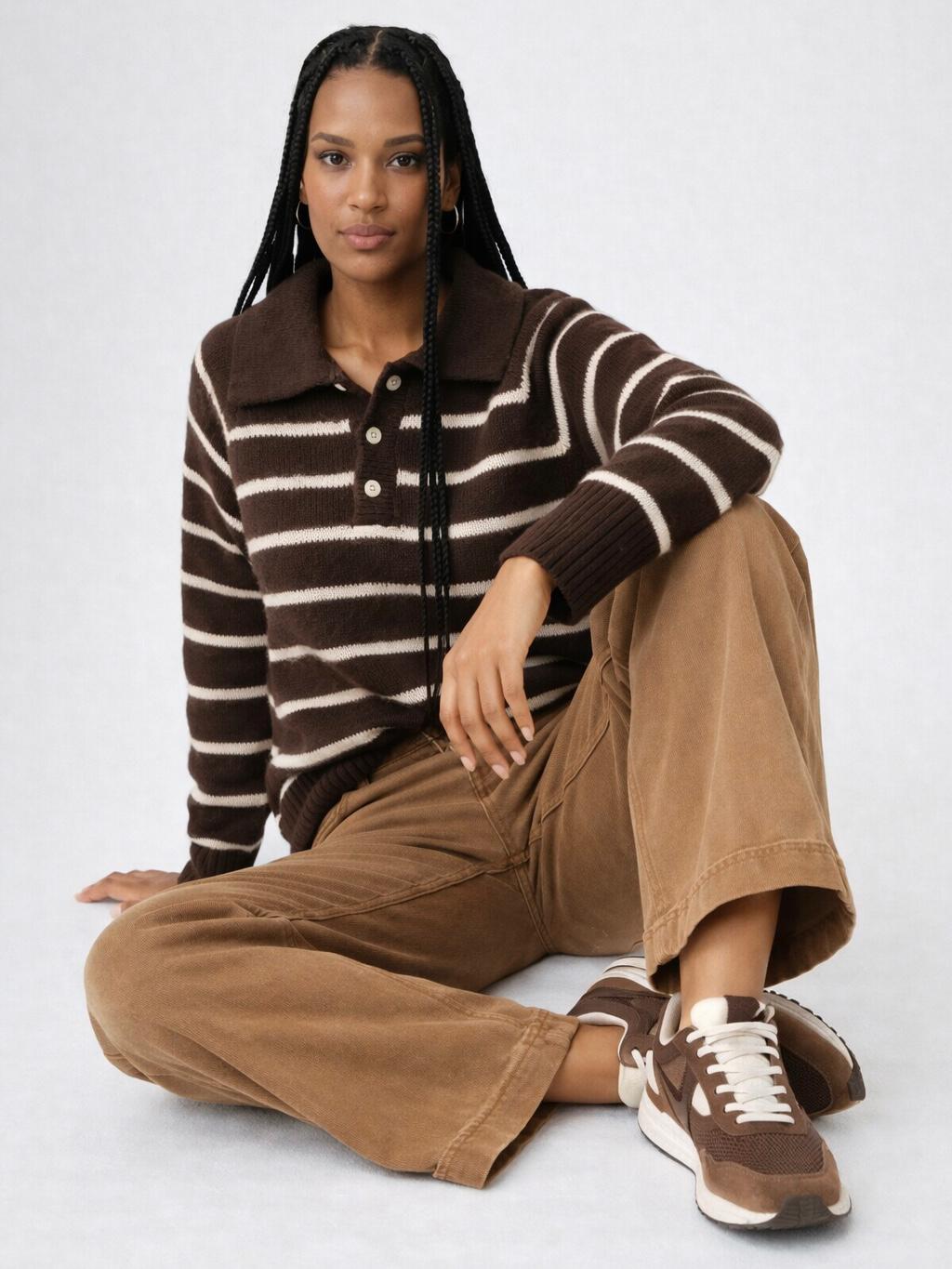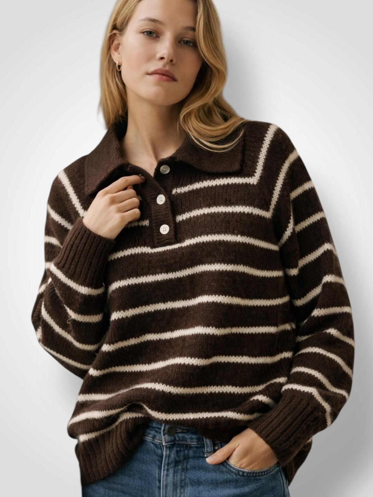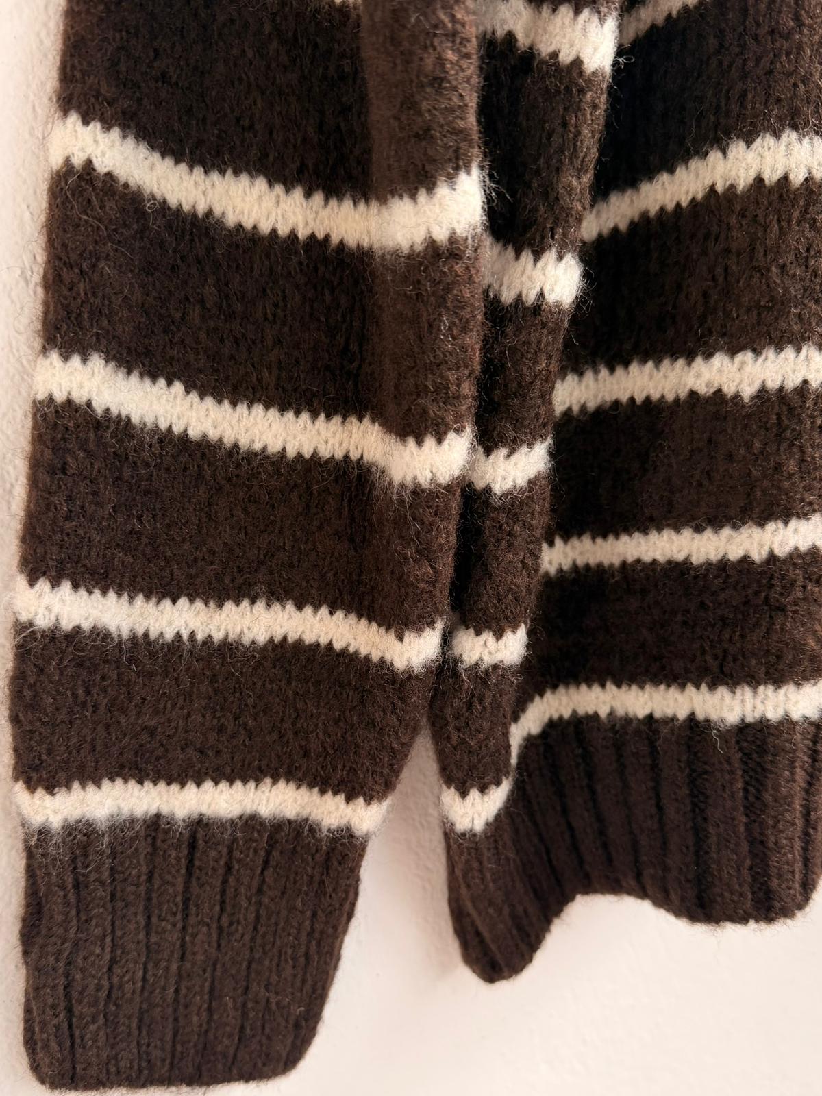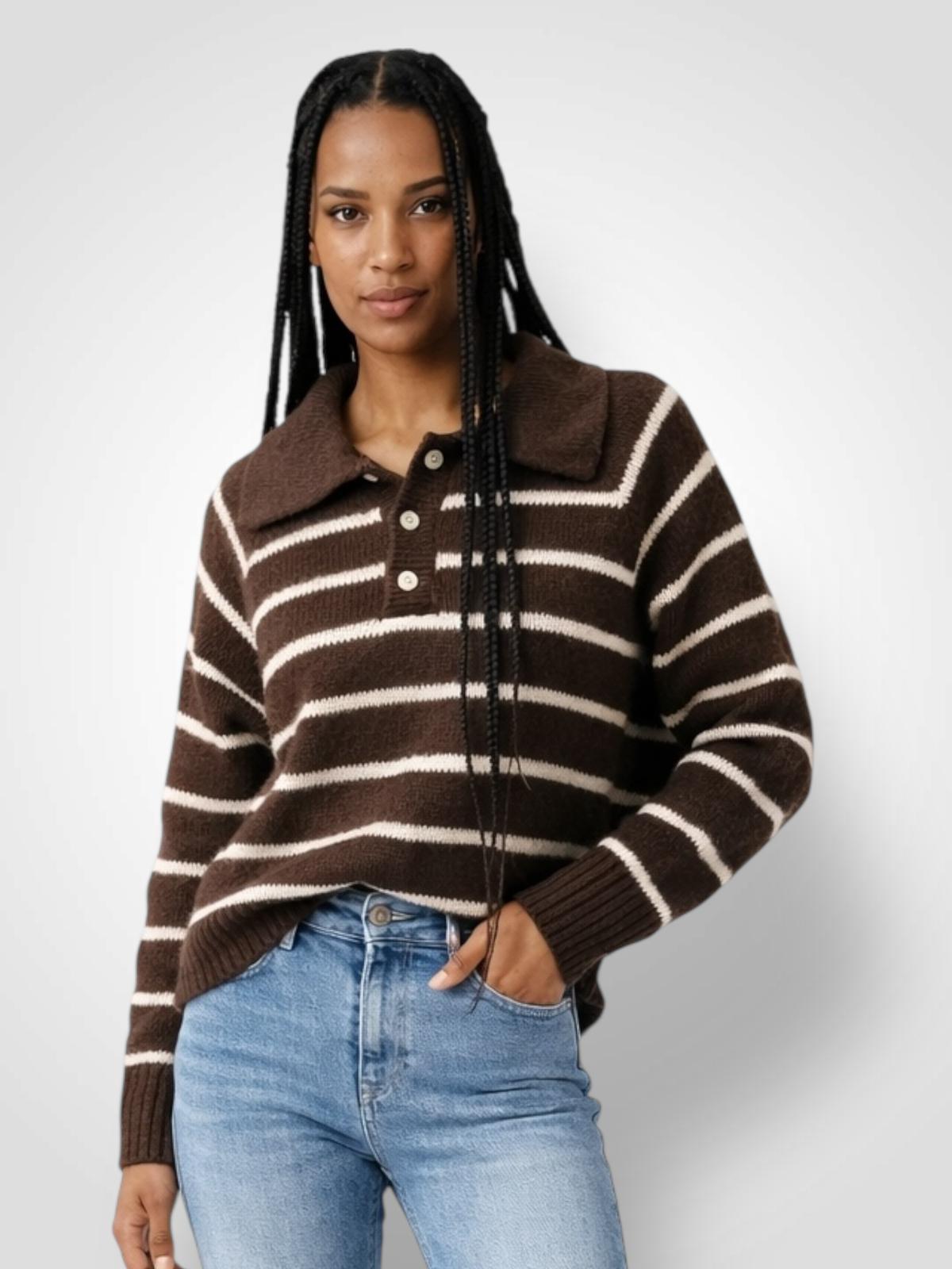 Jersey de rayas con cuello cómodo y atemporal, una pieza que no puede faltarte esta temporada. Su tejido suave y diseño clásico lo hacen ideal para combinaciones casuales o looks más trabajados con blazer o abrigo. Perfecto para los días frescos sin renunciar al estilo.