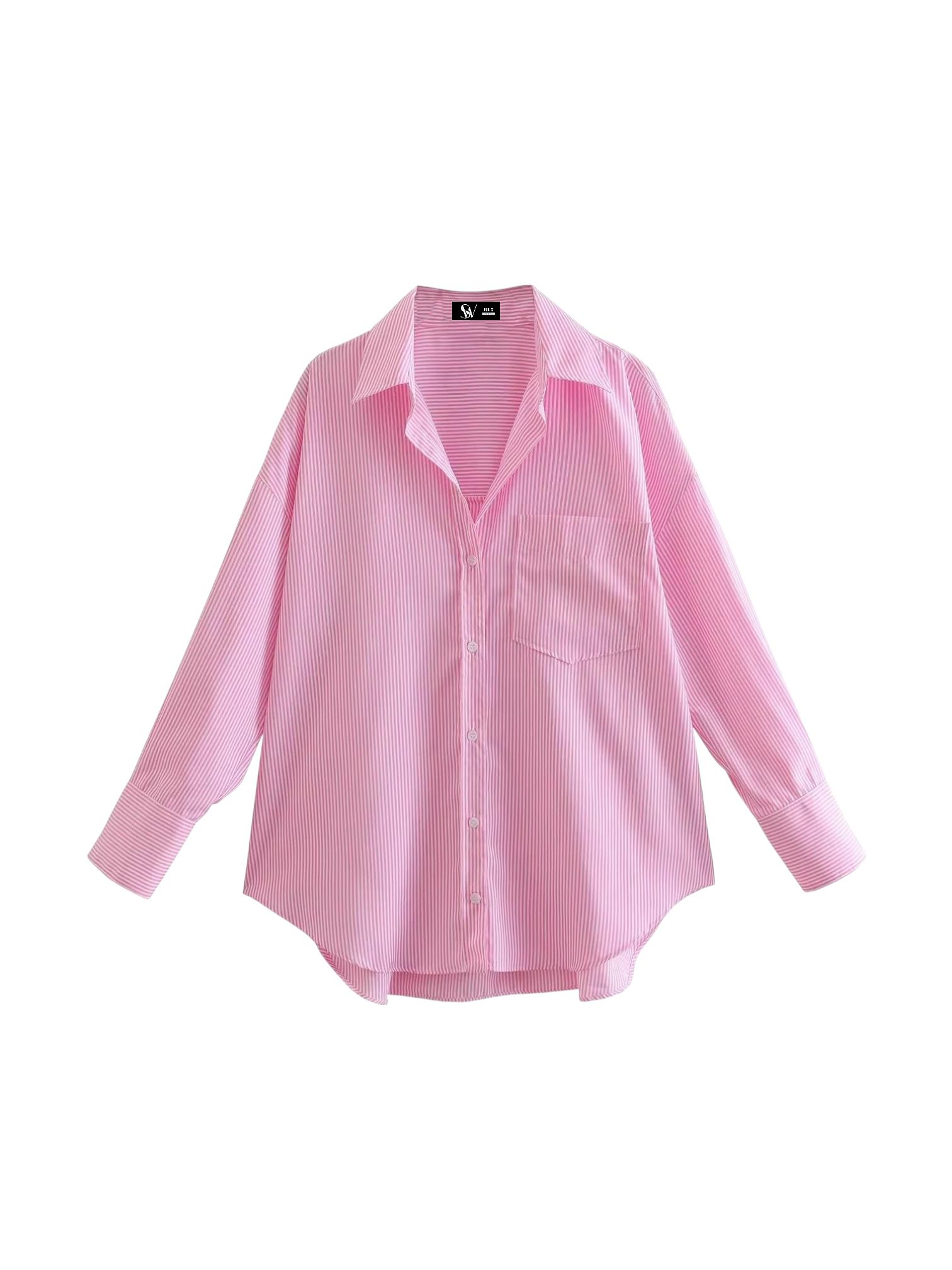 La Camisa Oversize de Rayas es la prenda perfecta para lograr un look fresco, moderno y versátil. Su diseño amplio y relajado garantiza comodidad sin renunciar al estilo, mientras que sus rayas verticales aportan un toque clásico y favorecedor.
