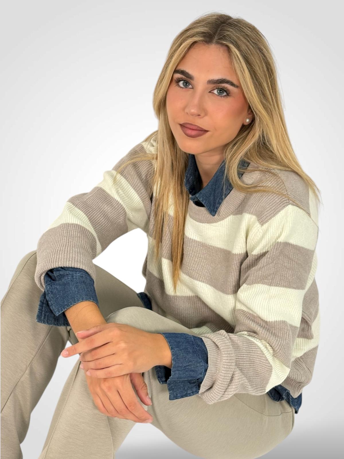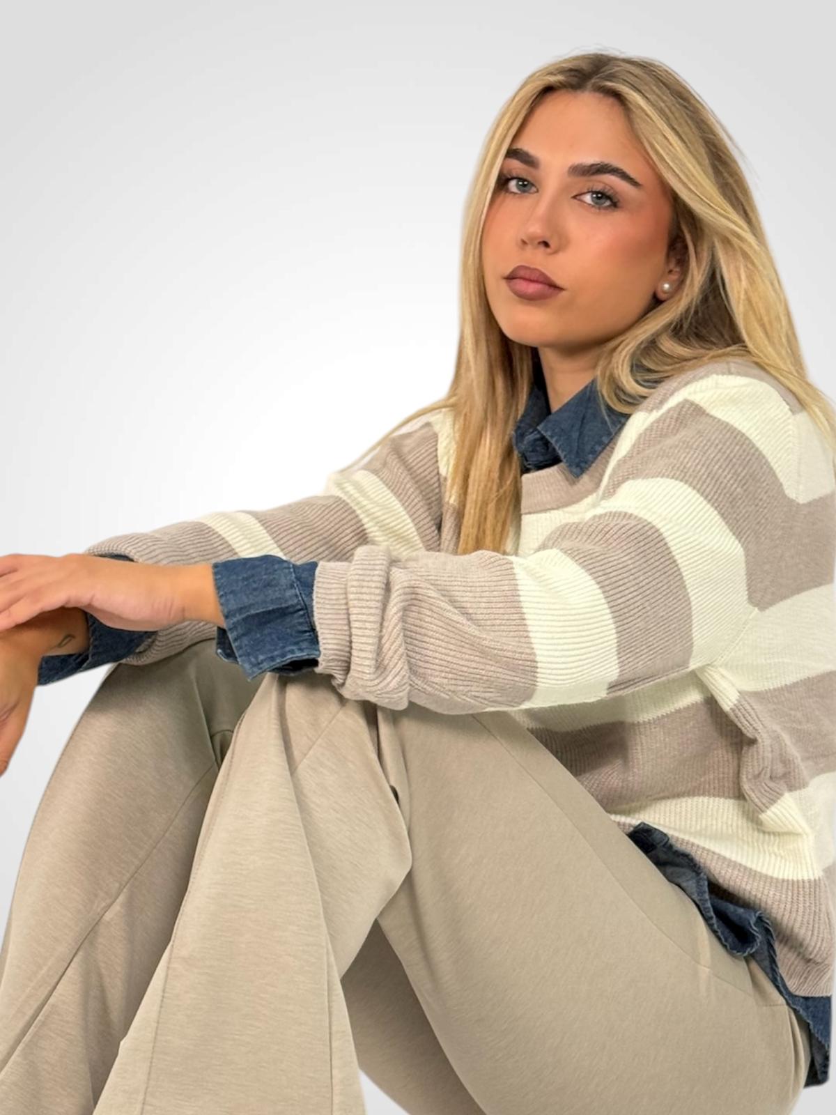 Un jersey de rayas con lana cálida y estilo versátil que acompañará tus looks en cualquier temporada. Hazlo tuyo con SIGLERWOMAN.